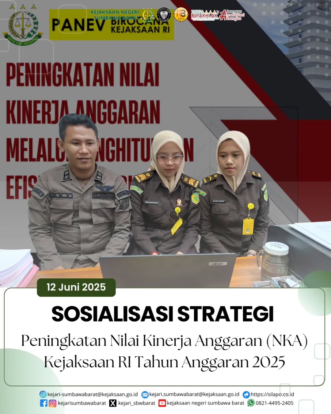 Pada hari Kamis, 12 Juni 2025. Staf Pembinaan dan operator Sakti mengikuti sosialisasi peningkatan nilai kinerja anggaran (NKA) Kejaksaan RI tahun anggaran 2025 secara virtual.