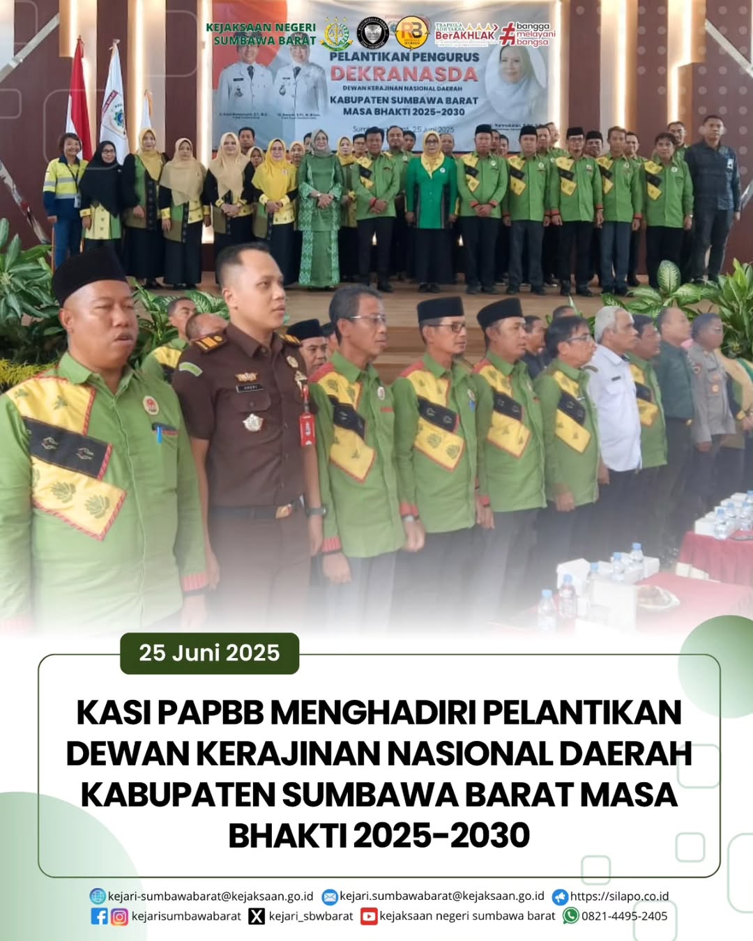 Pada hari Rabu, 25 Juni 2025. Kepala Seksi PAPBB, Andri Setiawan, SH mewakili Kepala Kejaksaan Negeri Sumbawa Barat menghadiri acara pelantikan dewan kerajinan nasional daerah (DEKRANASDA) Kabupaten Sumbawa Barat bertempat di Lantai III Sekretariat Daerah Kab. Sumbawa Barat.