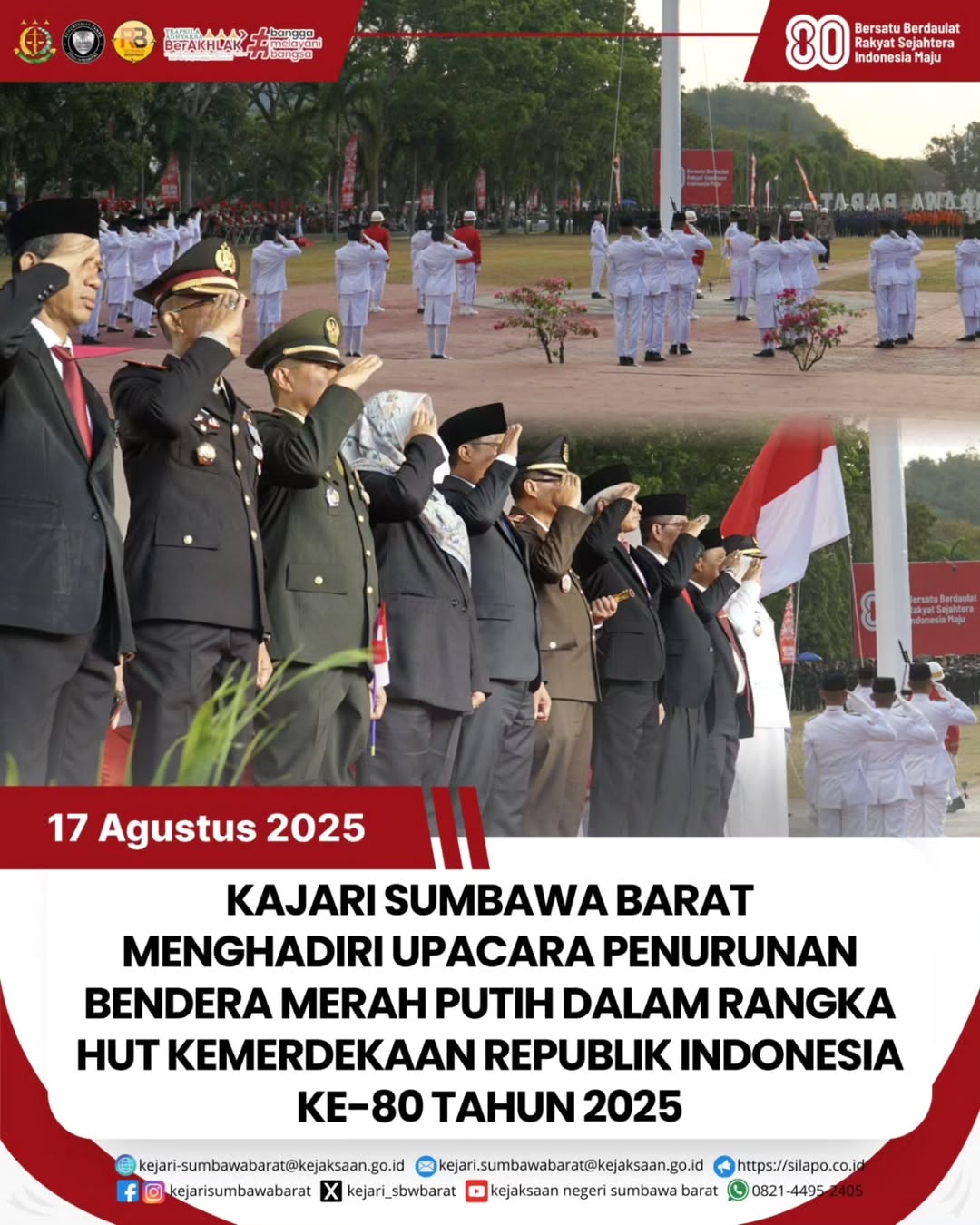 KAJARI SUMBAWA BARAT MENGHADIRI UPACARA PENURUNAN BENDERA MERAH PUTIH DALAM RANGKA HUT KEMERDEKAAN REPUBLIK INDONESIA KE-80 TAHUN 2025
