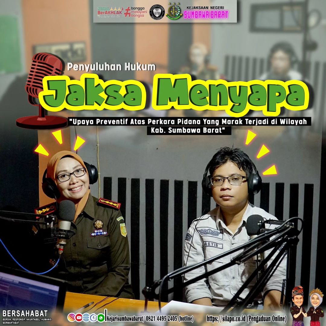 Kejaksaan Negeri Sumbawa Barat melaksanakan penyuluhan hukum melalui Radio dengan program Jaksa Menyapa dengan mengangkat judul “Upaya Preventif Atas Perkara Yang Marak Terjadi di Wilayah Kab. Sumbawa Barat”.