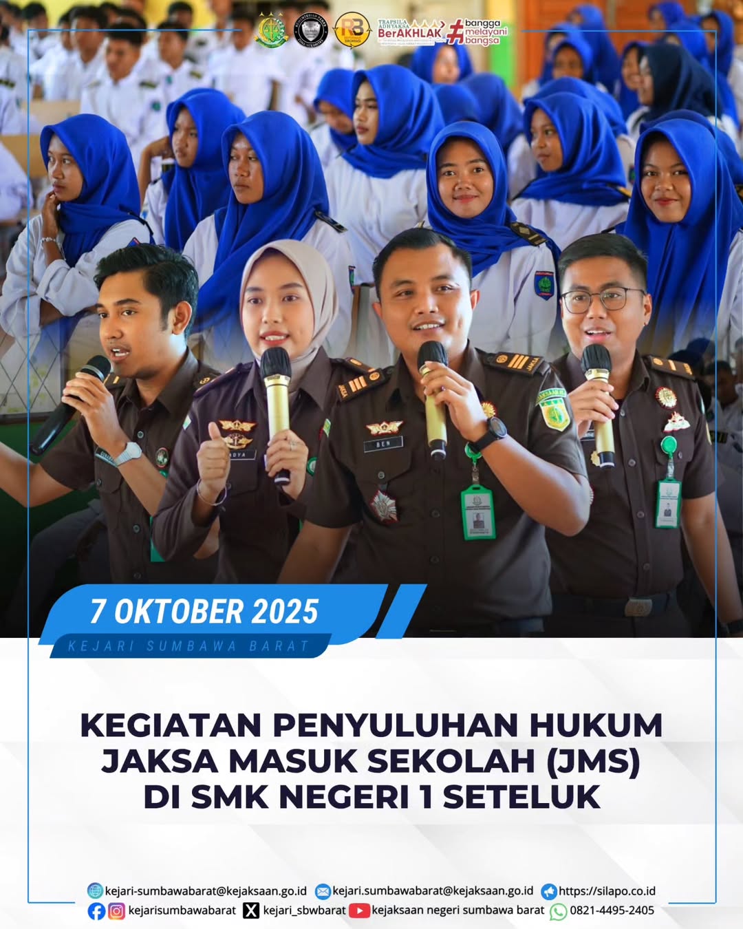 Pada hari Selasa, 7 Oktober 2025. Kejari Sumbawa Barat kembali melaksanakan penyuluhan hukum Jaksa Masuk Sekolah (JMS) yang dipimpin langsung oleh Kasi Intelijen Kejari Sumbawa Barat Benny Utama, SH beserta tim.