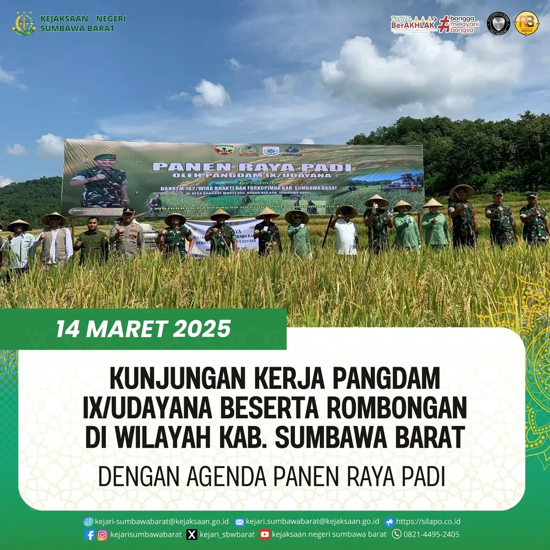KUNJUNGAN KERJA PANGDAM IX/UDAYANA BESERTA ROMBONGAN DI WILAYAH KAB. SUMBAWA BARAT DENGAN AGENDA PANEN RAYA PADI