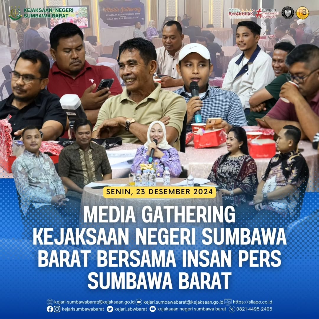Pada hari Senin, 23 Desember 2024. Kepala Kejaksaan Negeri Sumbawa Barat, Dr. Titin Herawati Utara, SH.,MH melaksanakan gathering bersama awak media cetak, online, TV dalam rangka membahas capaian kinerja Kejaksaan Negeri Sumbawa Barat tahun 2024 bertempat di Loby Kantor Kejaksaan Negeri Sumbawa Barat.
