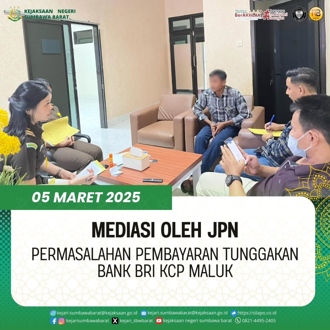 Pada hari Rabu, 05 Maret 2025, Tim JPN kejari Sumbawa Barat telah melaksanakan Mediasi atas Permohonan Bantuan Hukum dari Bank BRI KCP Maluk.