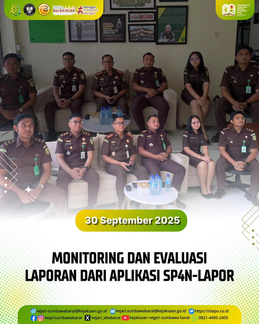 Pada hari Selasa, 30 September 2025. Kepala Kejaksaan Negeri Sumbawa Barat Bapak Agung Pamungkas, SH., MH beserta Kasi Intelijen Kejari Sumbawa Barat Benny Utama, SH mengikuti kegiatan Monitoring dan Evaluasi Laporan Masyarakat yang masuk melalui Aplikasi SP4N-LAPOR di situs www.lapor.go.id.