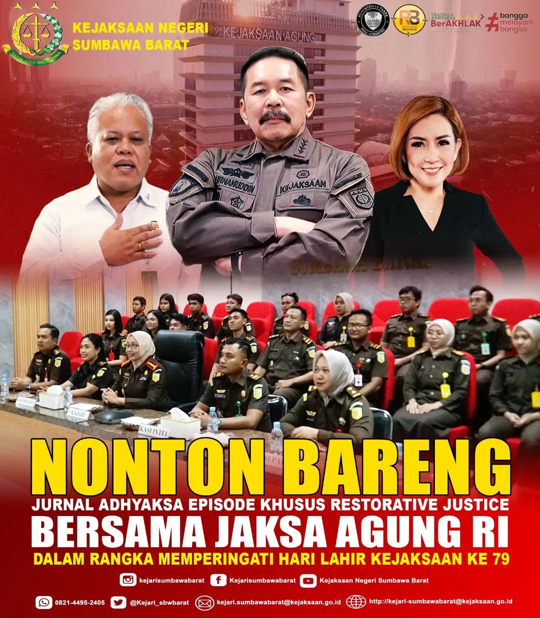 NONTON BARENG JURNAL ADHYAKSA EPISODE KHUSUS RESTORACTIVE JUSTICE BERSAMA JAKSA AGUNG RI DALAM RANGKA MEMPERINGATI HARI LAHIR KEJAKSAAN KE-79