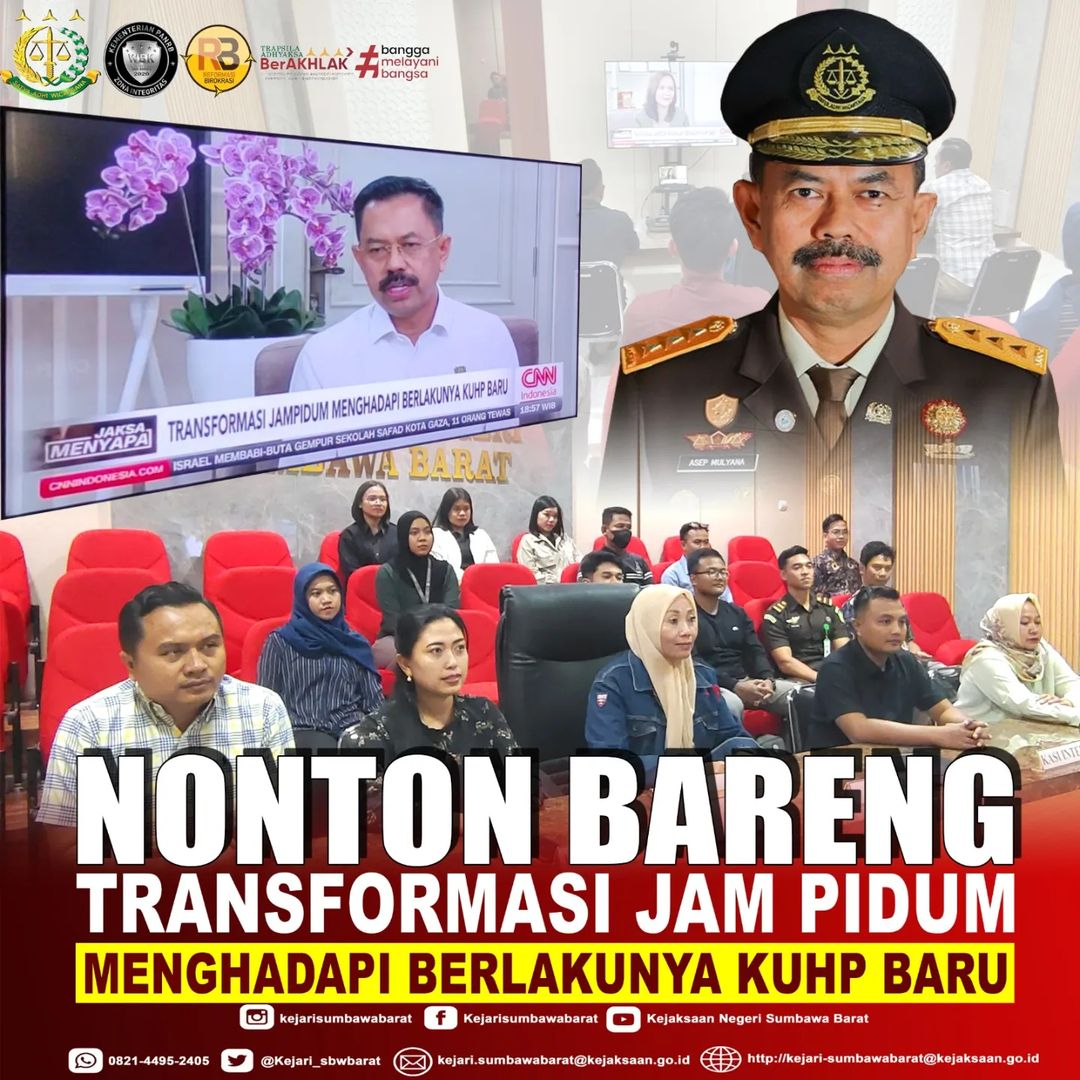 Pada Hari Senin, 2 September 2024. Kepala Kejaksaan Negeri Sumbawa Barat Berserta Jajaran Menyelenggarakan Nonton Bareng Jaksa Menyapa dengan Tema “Transformasi JAM Pidum Menghadapi Berlakunya KUHP Baru di CNN Indonesia”.