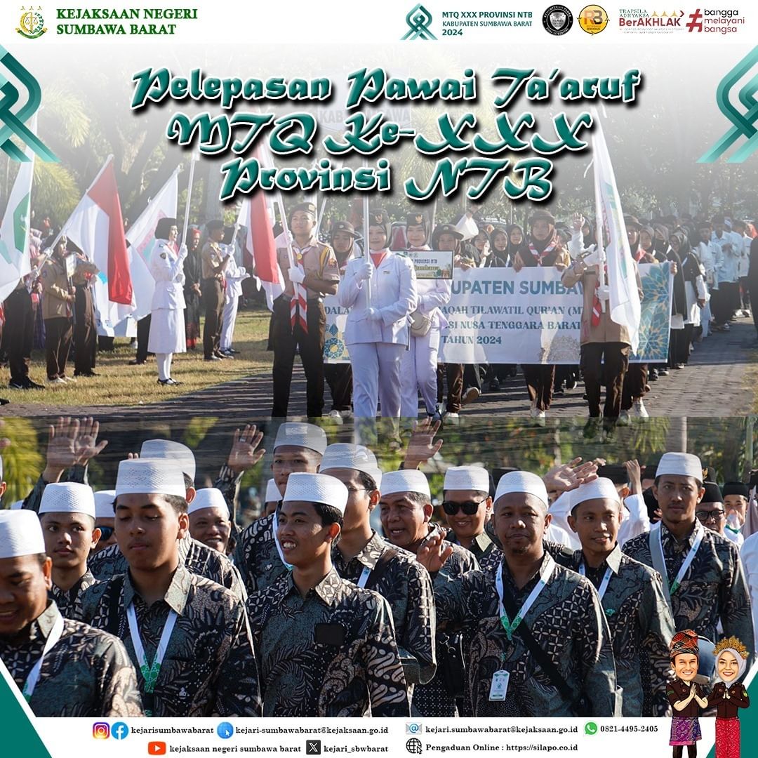 Pada Hari Sabtu, 22 Juni 2024 Kepala Kejaksaan Negeri Sumbawa Barat, Dr. Titin Herawati Utara, SH.,MH turut hadir dalam pelaksanaan Pawai Taaruf MTQ XXX Tingkat Provinsi Nusa Tenggara Barat, yang berlokasi di Graha Fitrah Kantor Bupati Sumbawa Barat.
