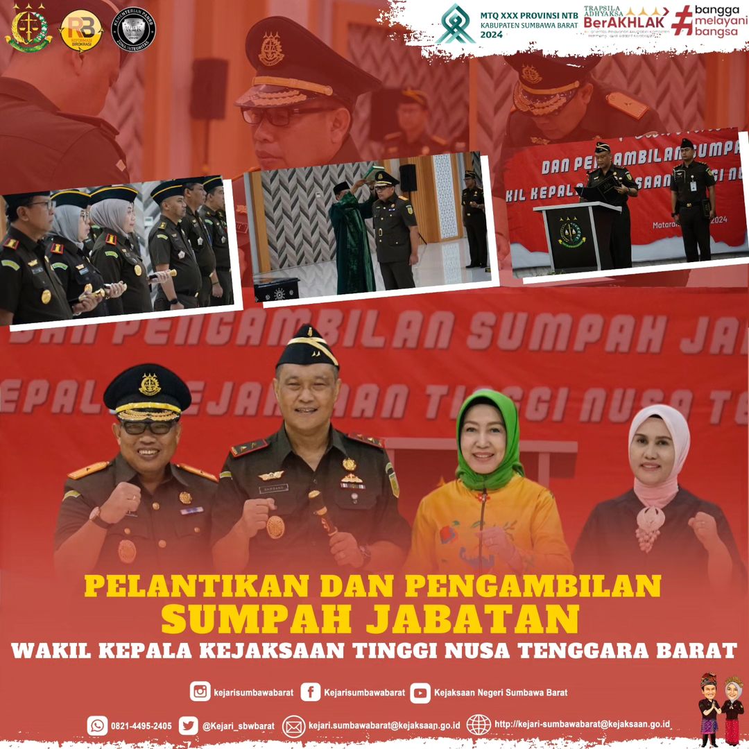 Kepala Kejaksaan Tinggi NTB Bapak Dr. Bambang Gunawan Melantik Secara langsung Pejabat Baru Wakil Kepala Kejaksaan Tinggi NTB, Dedie Tri Hariyadi, S.H., M.H, yang menggantikan pejabat sebelumnya yaitu Dr. Abd Qohar AF, SH., MH, yang bertempat di aula Kejati NTB yang diikuti oleh para Pejabat eselon II, eselon III, dan eselon IV pada Kejati NTB serta Para Kajari se-NTB.