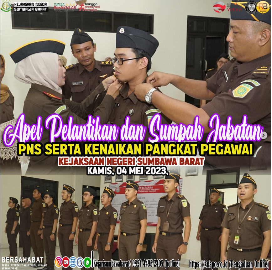 Kepala Kejaksaan Negeri Sumbawa Barat Dr. Titin Herawati Utara, SH., MH. memimpin apel pelantikan dan pengambilan sumpah jabatan kepada para PNS baru dan Kenaikan Jabatan Pegawai Lama.