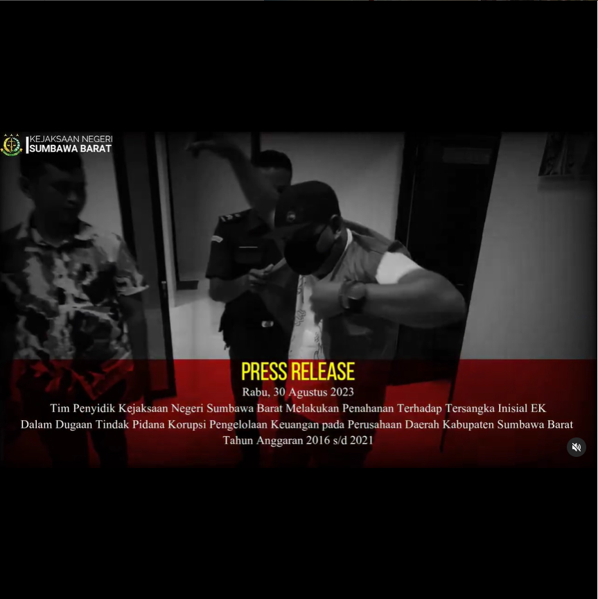 Rabu, 30 Agustus 2023 bertempat di Kantor Kejaksaan Negeri Sumbawa Barat, Tim Jaksa Penyidik Perkara Dugaan Tindak Pidana Korupsi Pengelolaan Keuangan pada Perusahaan Daerah Kabupaten Sumbawa Barat Tahun Anggaran 2016 sampai dengan Tahun 2021 telah melakukan pemeriksaan dan penahanan terhadap Tersangka atas nama EK selaku Pemilik dari CV. Putra Andalan Marine (CV. PAM).