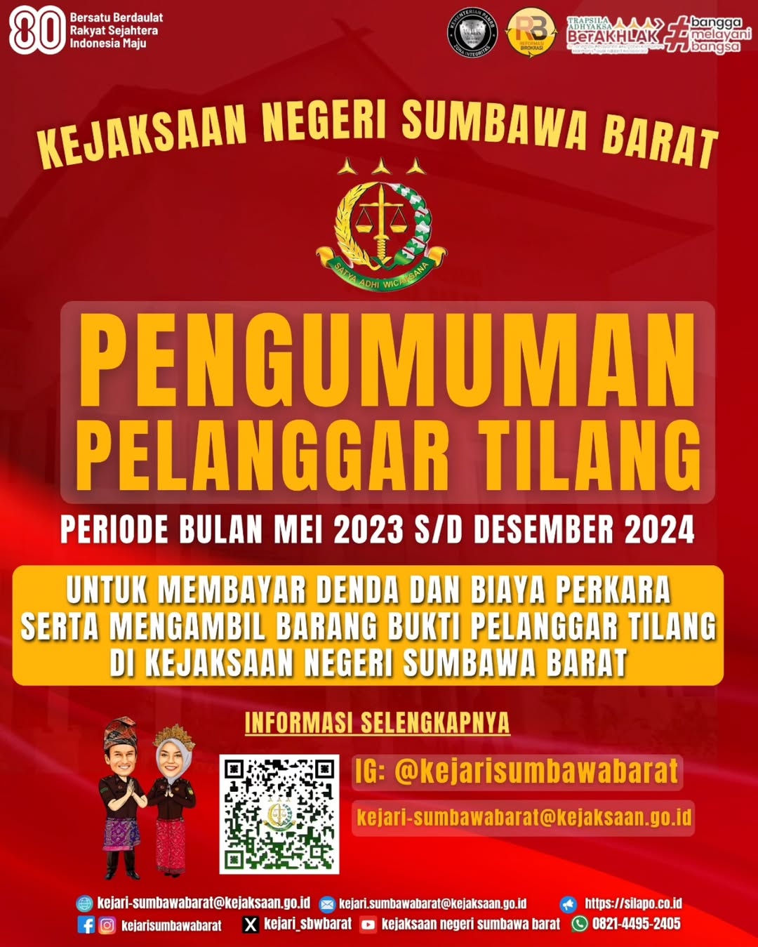 Yuk datang ke Kejaksaan Negeri Sumbawa Barat untuk menebus, kami tunggu ya.