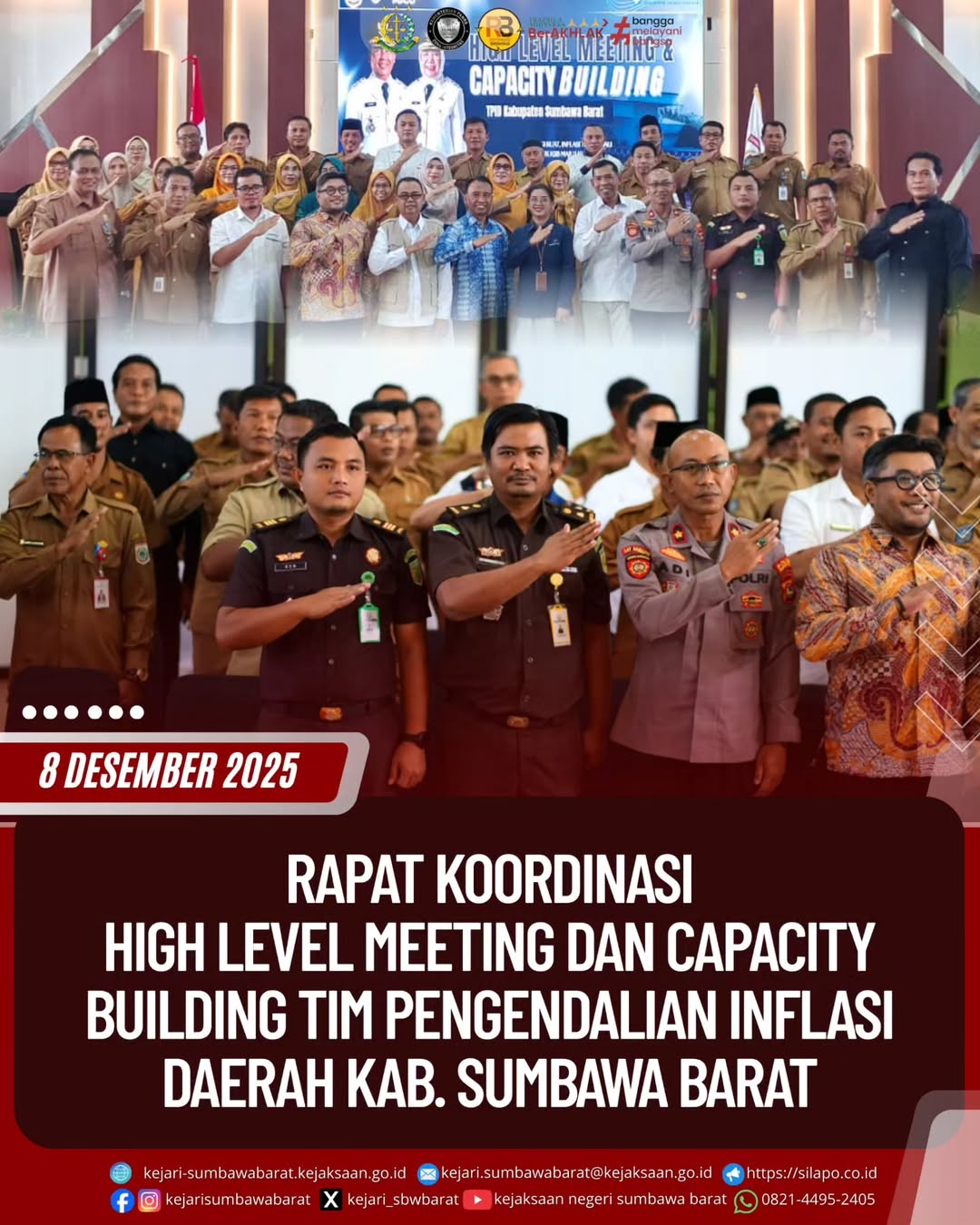 Pada hari Senin, 8 Desember 2025. Kejaksaan Negeri Sumbawa Barat mengikuti kegiatan Rapat Koordinasi High Level Meeting dan Capacity Building tim Pengendalian Inflasi Daerah Kab. Sumbawa Barat tahun 2025 yang dilaksanakan di Lt. 3 Gedung Graha Praja KTC Kec. Taliwang.