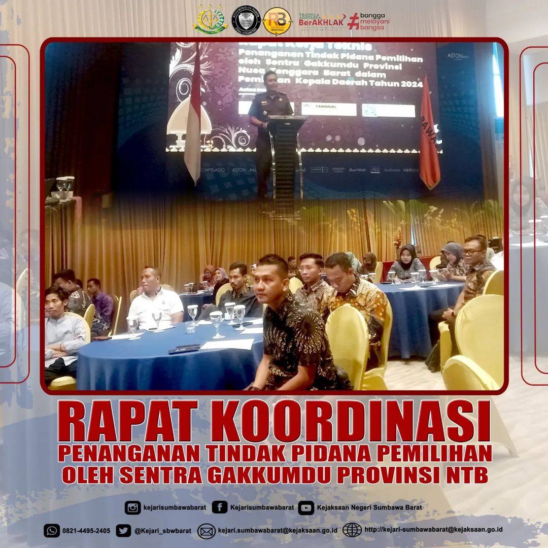 Pada tanggal tanggal 6 s/d 7 September 2024. Kepala Seksi Tindak Pidana Umum, Rizki Taufani, SH menghadiri kegiatan rapat koordinasi penanganan tindak pidana pemilihan oleh Sentra Penegakan Hukum Terpadu (Gakkumdu) provinsi NTB .
