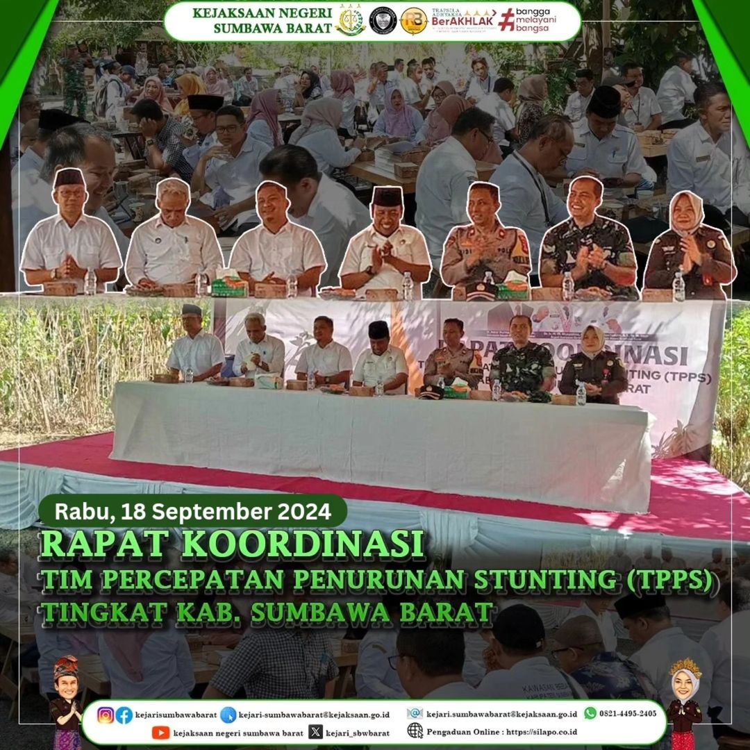Pada hari Rabu, 18 September 2024 Kepala Seksi Pemulihan Aset dan Pengelolaan Barang Bukti Yulia Oktavia Ading, SH.,MH mewakili Kepala Kejaksaan Negeri Sumbawa Barat dalam acara rapat koordinasi Tim Percepatan Penurunan Stunting (TPPS) tingkat Kab. Sumbawa Barat bertempat di Ai Bua Kec. Steluk Rabu,.