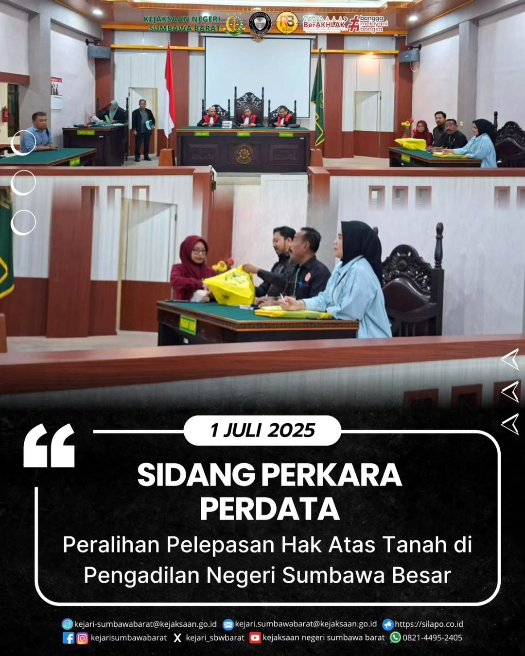 SIDANG PERKARA PERDATA AGENDA PERALIHAN PELEPASAN HAK ATAS TANAH DI PENGADILAN NEGERI SUMBAWA BESAR