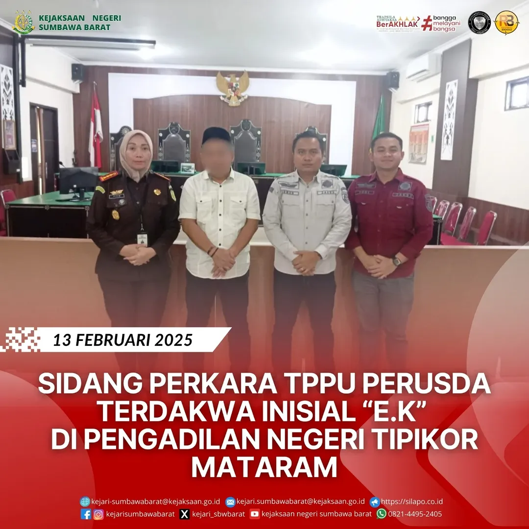 Pada hari Kamis tanggal 13 Februari 2025 telah dilaksanakan Sidang Perkara Tindak Pidana Pencucian Uang A.N Terdakwa Engkus kuswoyo di Pengadilan Negeri Mataram dengan agenda pemeriksaan Saksi,