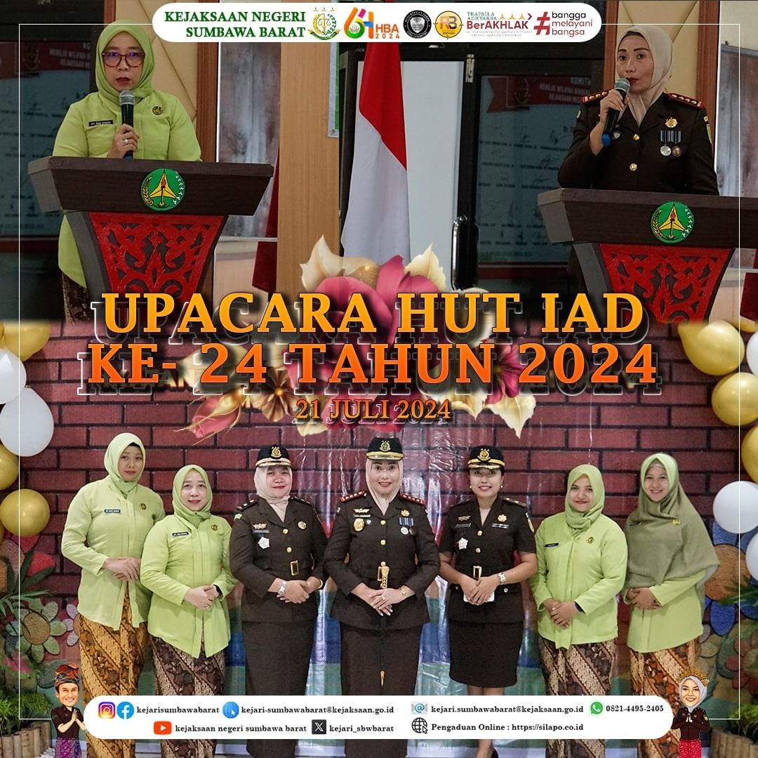 Pada Hari Minggu, 21 Juli 2024. Bertempat di Aula Kejari Sumbawa Barat diselenggarakan Peringatan Hari Ulang Tahun XXIV Ikatan Adhyaksa Dharmakarini.