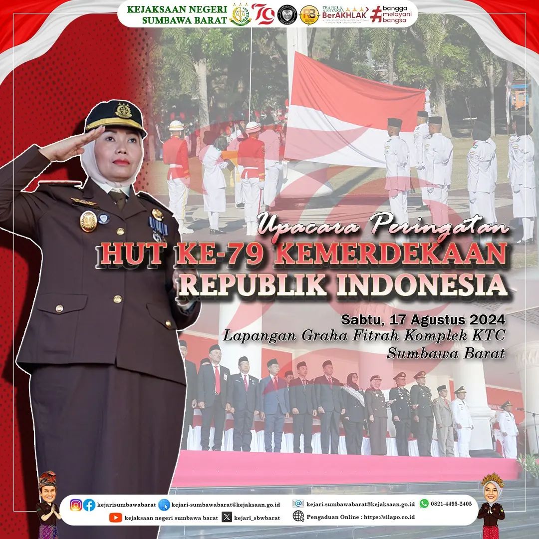 Pada Tanggal 17 Agustus 2024. Kepala Kejaksaan Negeri Sumbawa Barat, Dr. Titin Herawati Utara, SH.,MH Mengikuti Upacara Peringatan Hari Kemerdekaan Republik Indonesia yang Ke-79 Bertempat di Lapangan Graha Fitrah Kab. Sumbawa Barat.