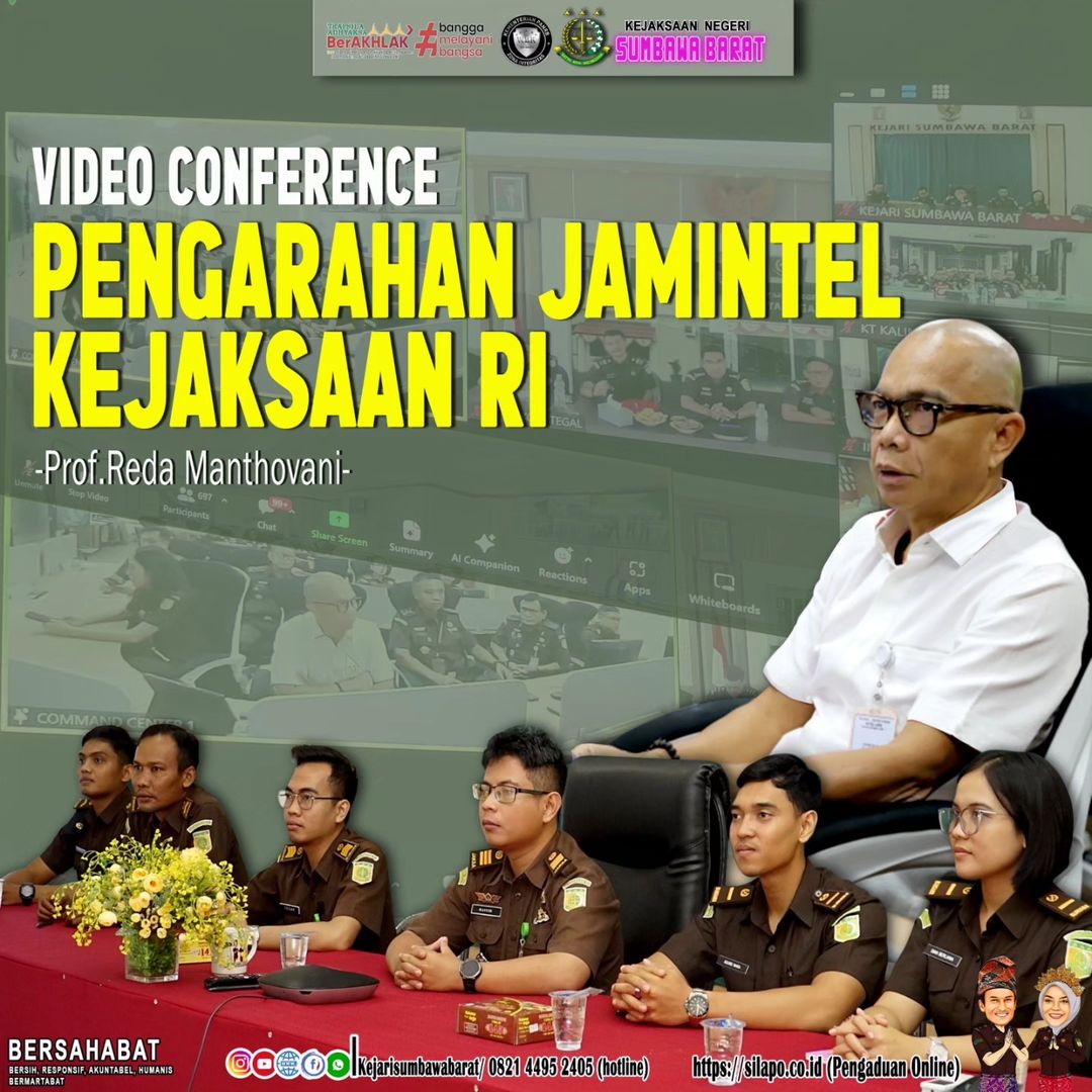 Kepala Kejaksaan Negeri Sumbawa Barat Ibu Dr. Titin Herawati Utara bersama Kepala Kejaksaan Tinggi NTB, Wakil Kepala Kejaksaan Tinggi NTB, beserta para Asisten dan pejabat pada Kejaksaan Tinggi NTB dan para Kajari se-Nusa Tentanggara Barat mengikuti kegiatan Video Conference Pengarahan Jaksa Agung Muda Intelijen Kejaksaan RI Bapak Prof. Reda Manthovani.